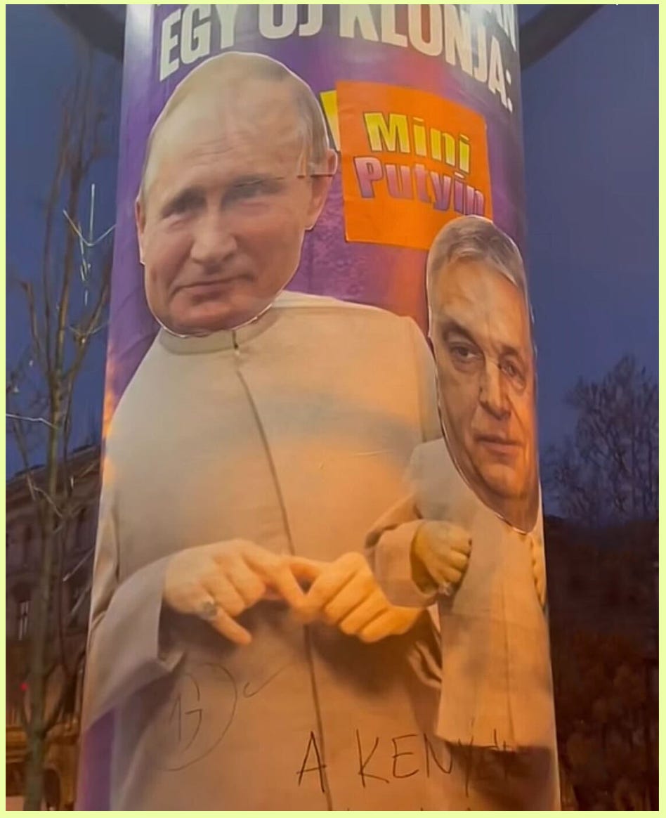 I snapped a picture of this poster likening Orbán to Dr. Evil’s “mini-me” a block or two from my apartment, and when I walked back that way the next day, it was gone.